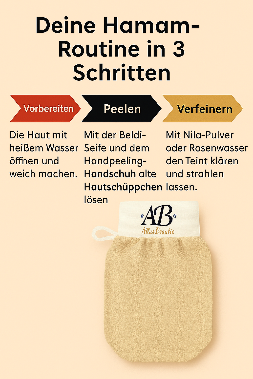 • Hand‑Peelinghandschuh – entfernt abgestorbene Hautzellen sichtbar.